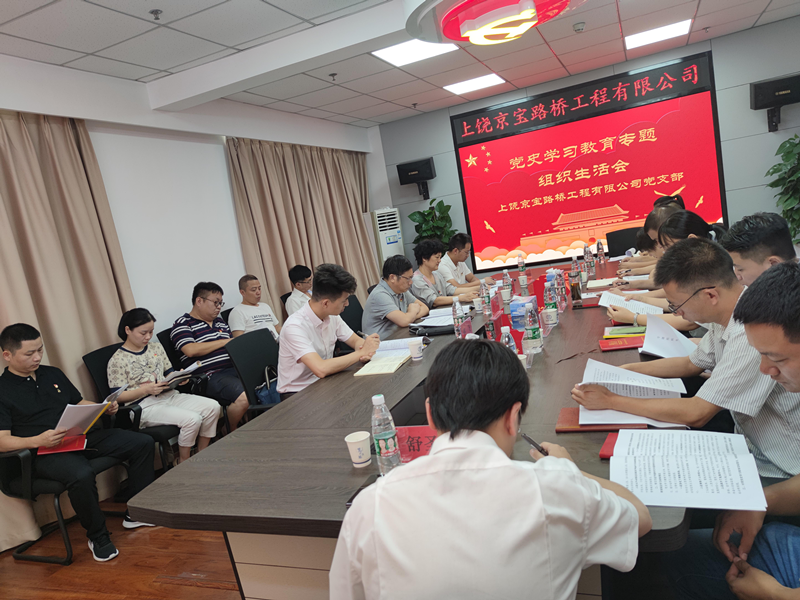 根据市委党史学习教育领导小组办公室《关于转发<关于召开党史学习教育专题组织生活会的通知>的通知》文件关于召开党史学习教育专题组织生活会的通知>精神要求,在广泛征求意见的前提下,2021年8月2日上午,上饶京宝路桥公司党支部召开了党史学习教育专题组织生活会,市党史学习教育第十三巡回指导组组长杨一虎、副组长汪丽、联络员骆飞、成员余太旺到会指导,集团党委副书记、总经理江宇与集团其他党支部书记列席。